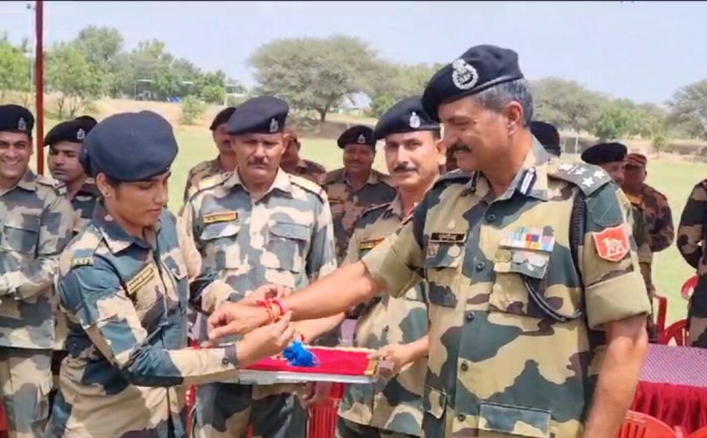 बीकानेर: रक्षाबंधन के पर्व पर सीमा सुरक्षा बल के जवानों की कलाई पर राखी बांधी गई। यहां बहनों की और से रक्षा सूत्र बांधे गये। बीएसएफ मुख्यालय पर एक कार्यक्रम के दौरान स्वयंसेवी संस्था के सदस्यों व महिला जवानों की ओर से जवानों को रक्षा सूत्र बांधा गया और मुंह मीठा करवाकर जवानों की दीघार्यु की कामना की गई। इन राखियों को बंधवाकर जवानों ने खुशी का इजहार किया। रक्षा सूत्र बांधने आई महिलाओं ने बताया कि अपने घरों से दूर देश सेवा में जुटे जवानों के लिये अपने परिवार के साथ त्योहार मनाना संभव नहीं होता है। ऐसे में इन जवानों के लिये हम परिवार का हिस्सा बनकर इनके साथ रक्षाबंधन मनाते है.