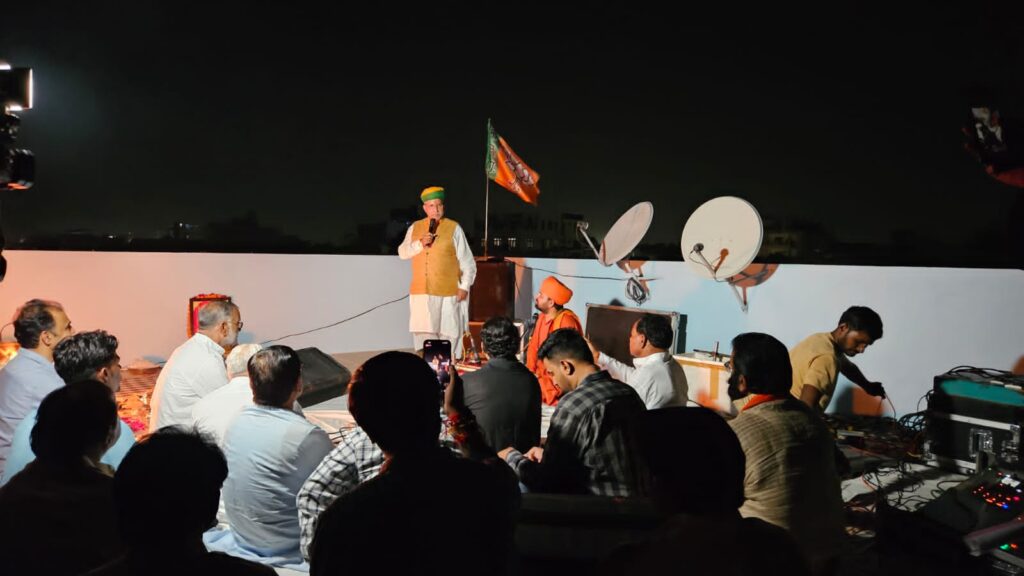 बीकानेर: बीकानेर सांसद सेवा केंद्र में “एक रात चांद के साथ” कार्यक्रम का आयोजन रखा गया इस कार्यक्रम में सामाजिक लोग, पार्टी कार्यकर्ताओ के साथ केंद्रीय कानून मंत्री बीकानेर सांसद अर्जुनराम मेघवाल के साथ चांद पर गीत गाए और गए संतो द्वारा भजन प्रस्तुत किए गए.