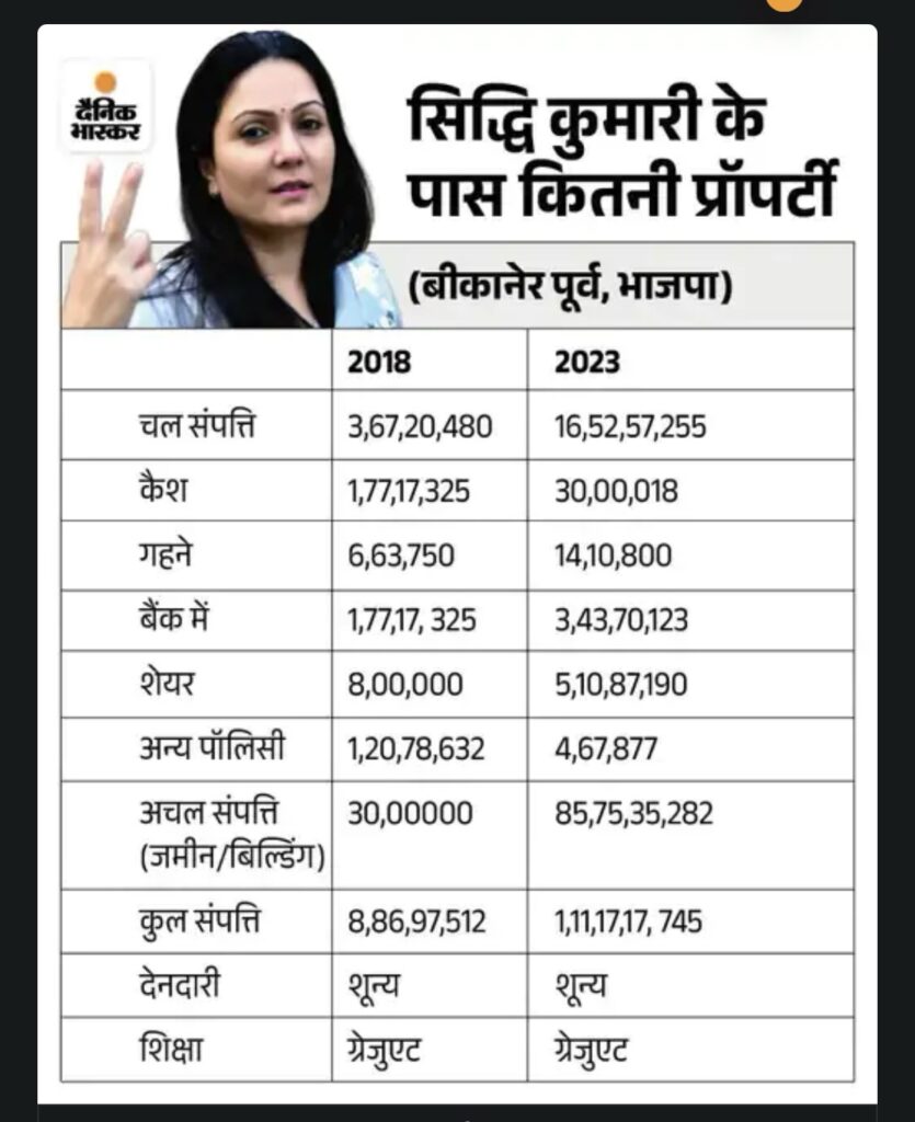 दरअसल, विधानसभा चुनाव के दौरान सिद्धि कुमारी की ओर से दिए एफिडेविट के बाद उनकी बुआ और पूर्व राजपरिवार की सदस्य राज्यश्री ने चुनाव आयोग से शिकायत की थी। इसके बाद ये विवाद गहराता गया और अब सिद्धि कुमारी ने बीकानेर एसपी तेजस्वनी गौतम को परिवाद पेश किया। इसके बाद बुधवार को सदर थाना पुलिस ने मामला दर्ज कर जांच शुरू कर दी है।