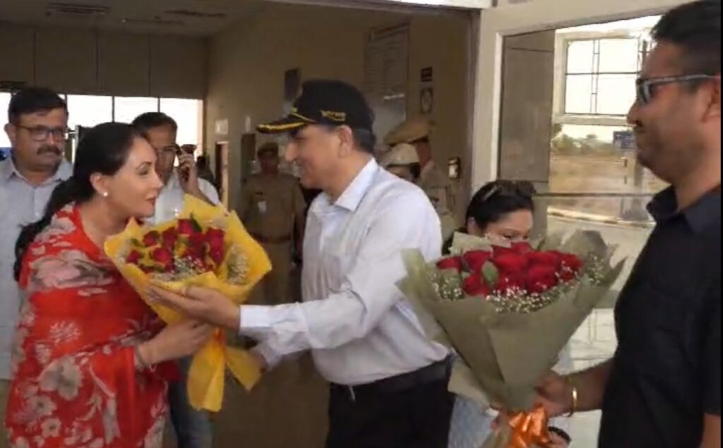 बीकानेर: राजस्थान की उपमुख्यमंत्री दिया कुमारी आज बीकानेर के दौरे कर रही जहां चुनावी माहौल के बीच दिया कुमारी बीकानेर के बीजेपी प्रत्याशी और केंद्रीय क़ानून मंत्री अर्जुनराम मेघवाल की नामांकन सभा में शिरकत करने पहुँची इस दौरान एयरपोर्ट पर पहुँचने पर विजय खत्री ने अपनी टीम के साथ उपमुख्यमंत्री दिया कुमारी का बुके देकर स्वागत किया इस दौरान अक्षय खत्री भी मौजूद रहे इस दौरान बीजेपी के पदाधिकारियों ने भी दिया कुमारी का स्वागत किया इस दौरे के दौरान खत्री उपमुख्यमंत्री दिया कुमारी के साथ दिखाई दिये